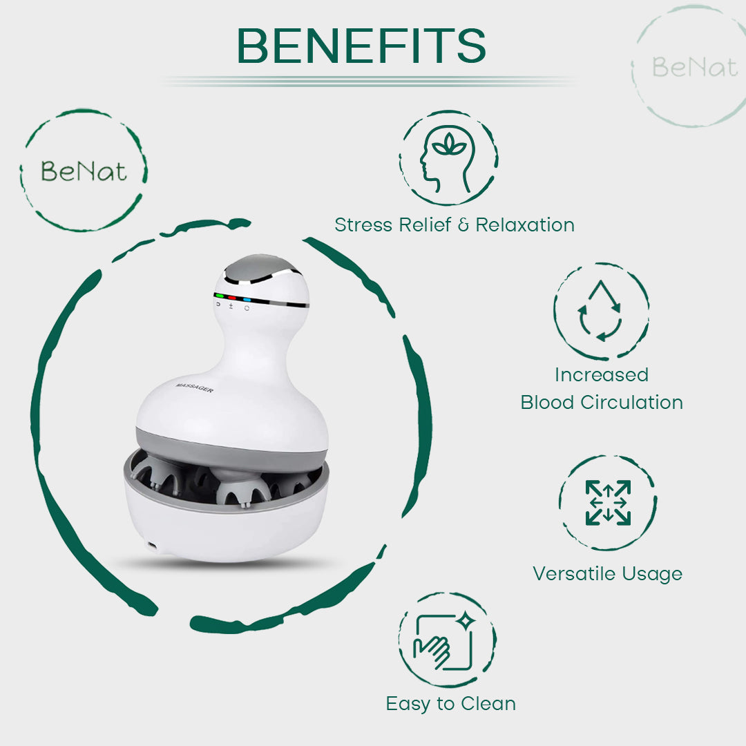 The Smart Electric Scalp Massager is the perfect choice for those looking to relieve stress and promote relaxation while enjoying the benefits of a deep, thorough scalp massage. This handheld portable head massager is cordless, rechargeable, and waterproof, making it suitable for use anywhere.
